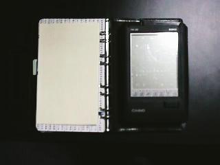 このRX−20を、小型の手帳の内側にマジックテープで貼り付け、ポケット
